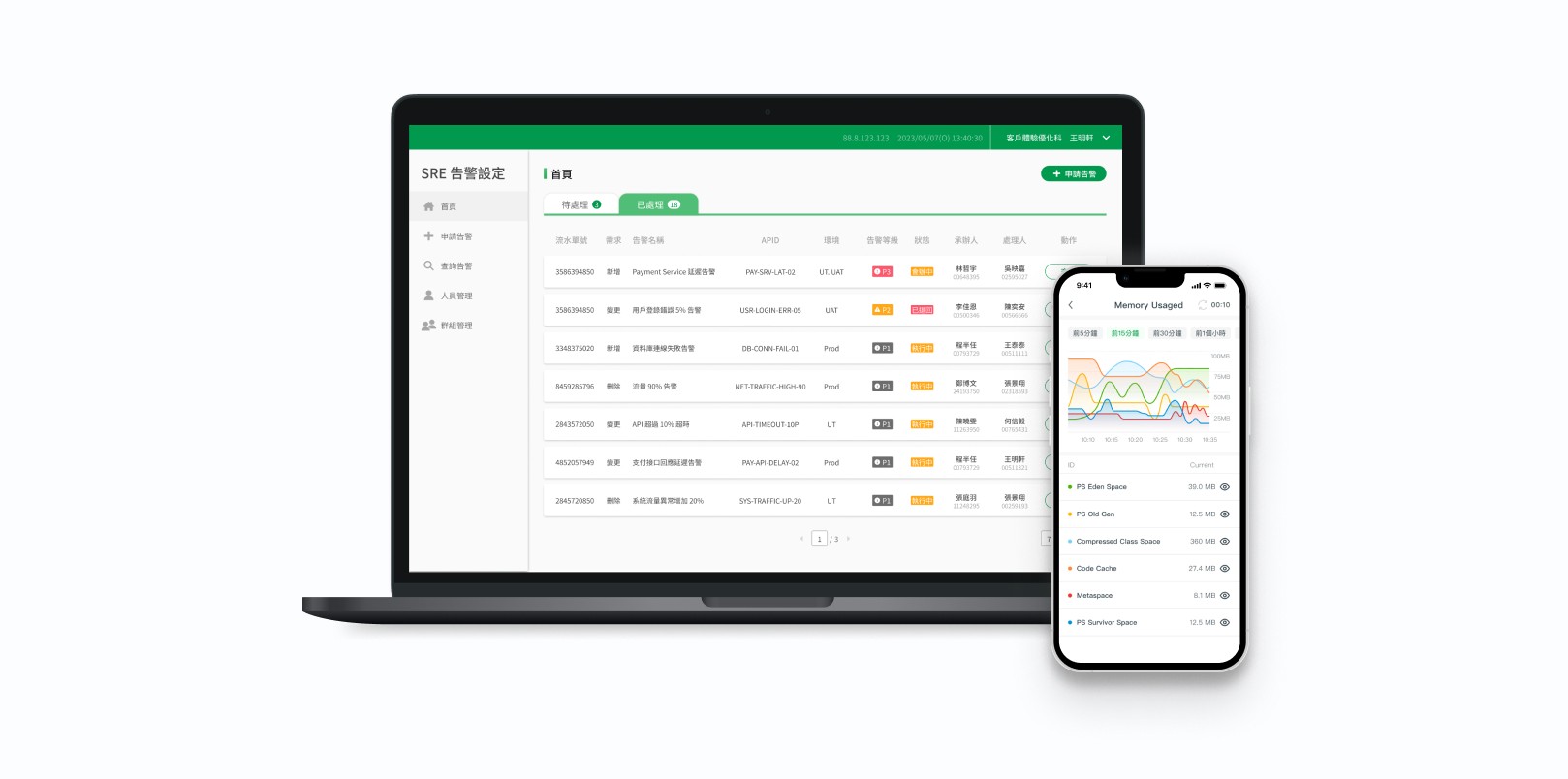 監控平台提供行內人員即時觀看並查詢監控資訊,此專案為製作雙平台的版本,讓監控人員可透過平台接收及設定告警警訊,縮短系統異常影響時間。我主導了需求訪談、收斂,利用MVP原型快速迭代,並交付完整的產品介面。顯著縮短了系統異常的平均修復時間10~30分鐘,提升金融級服務的穩定維運,減少客戶流失的潛在風險。