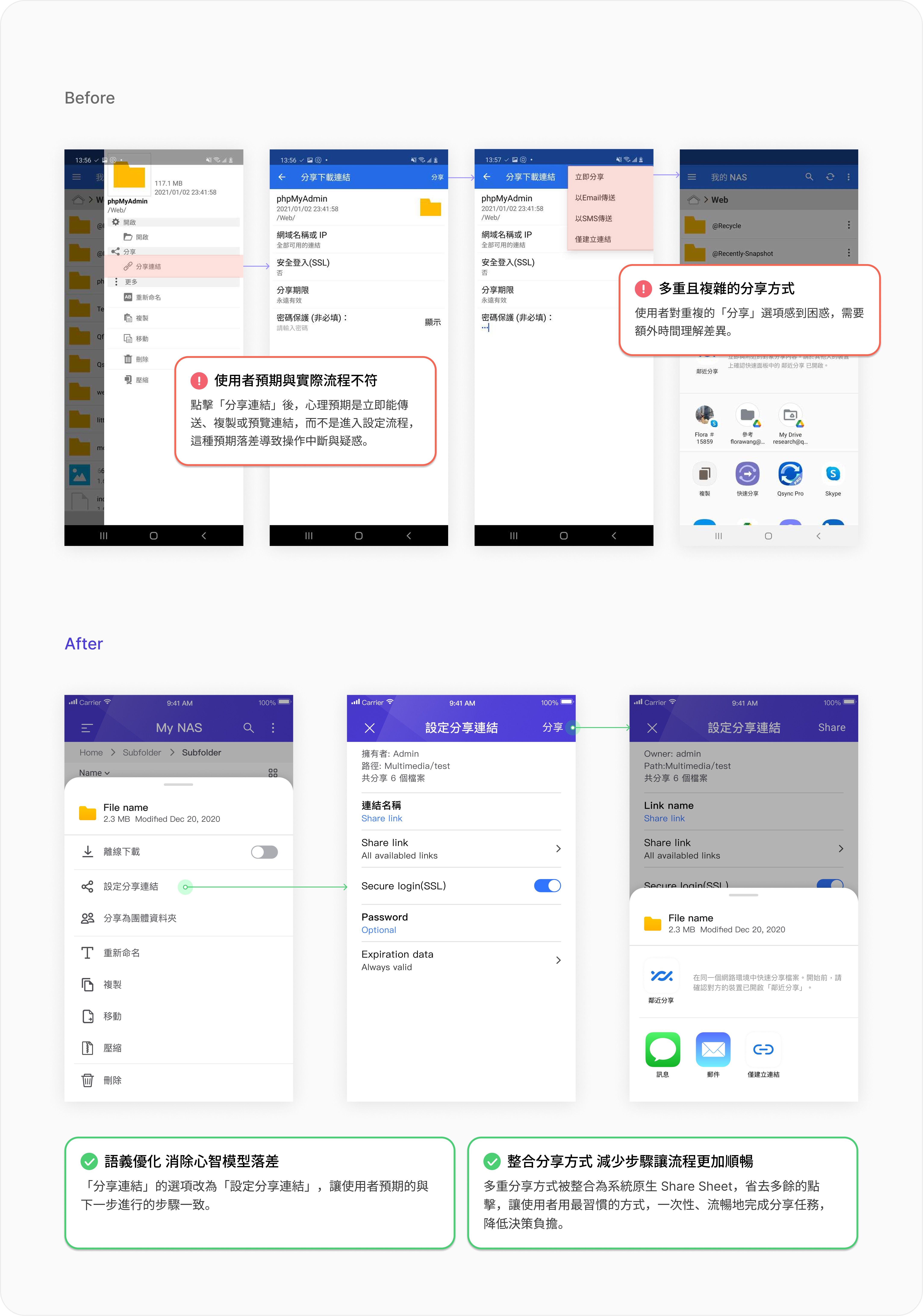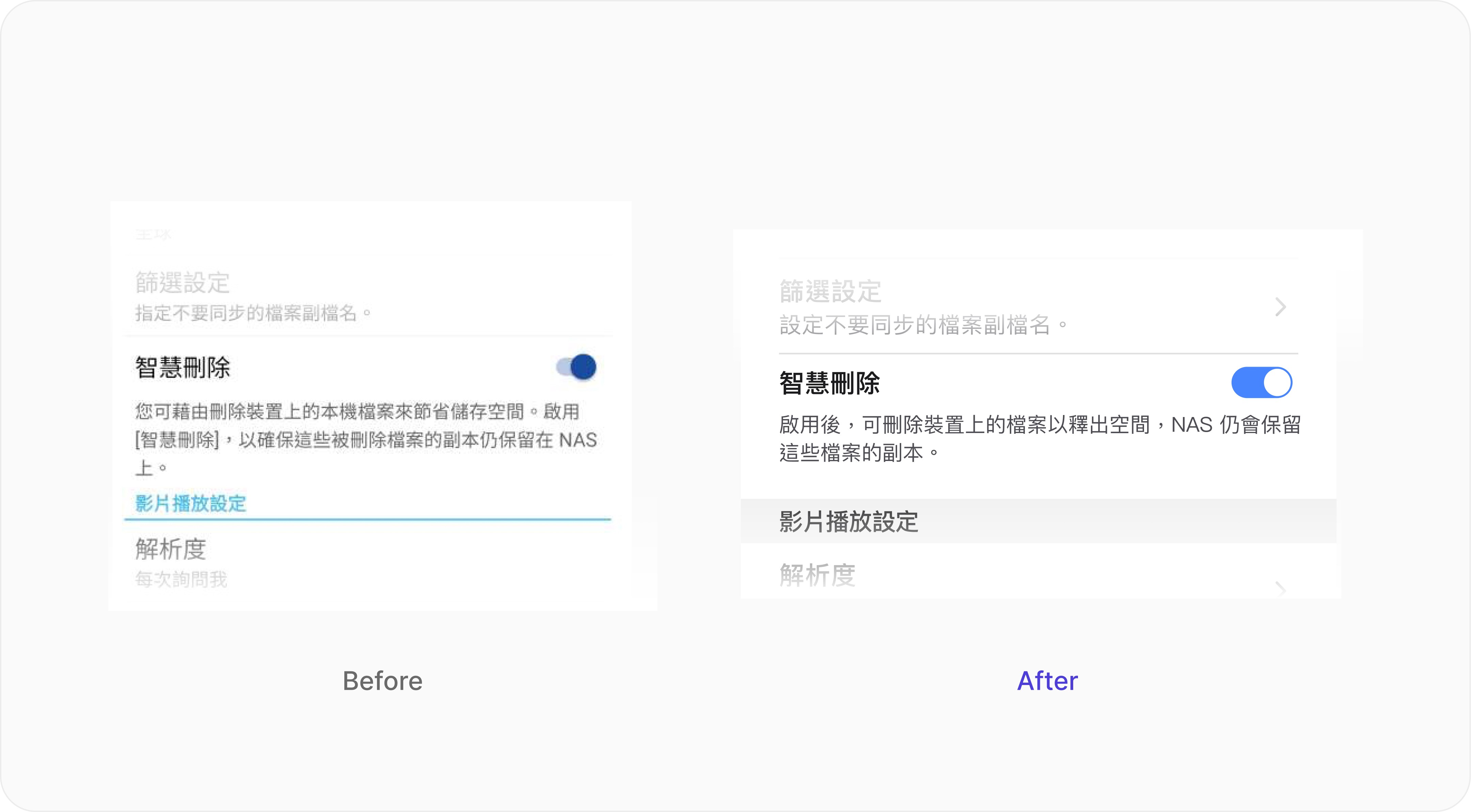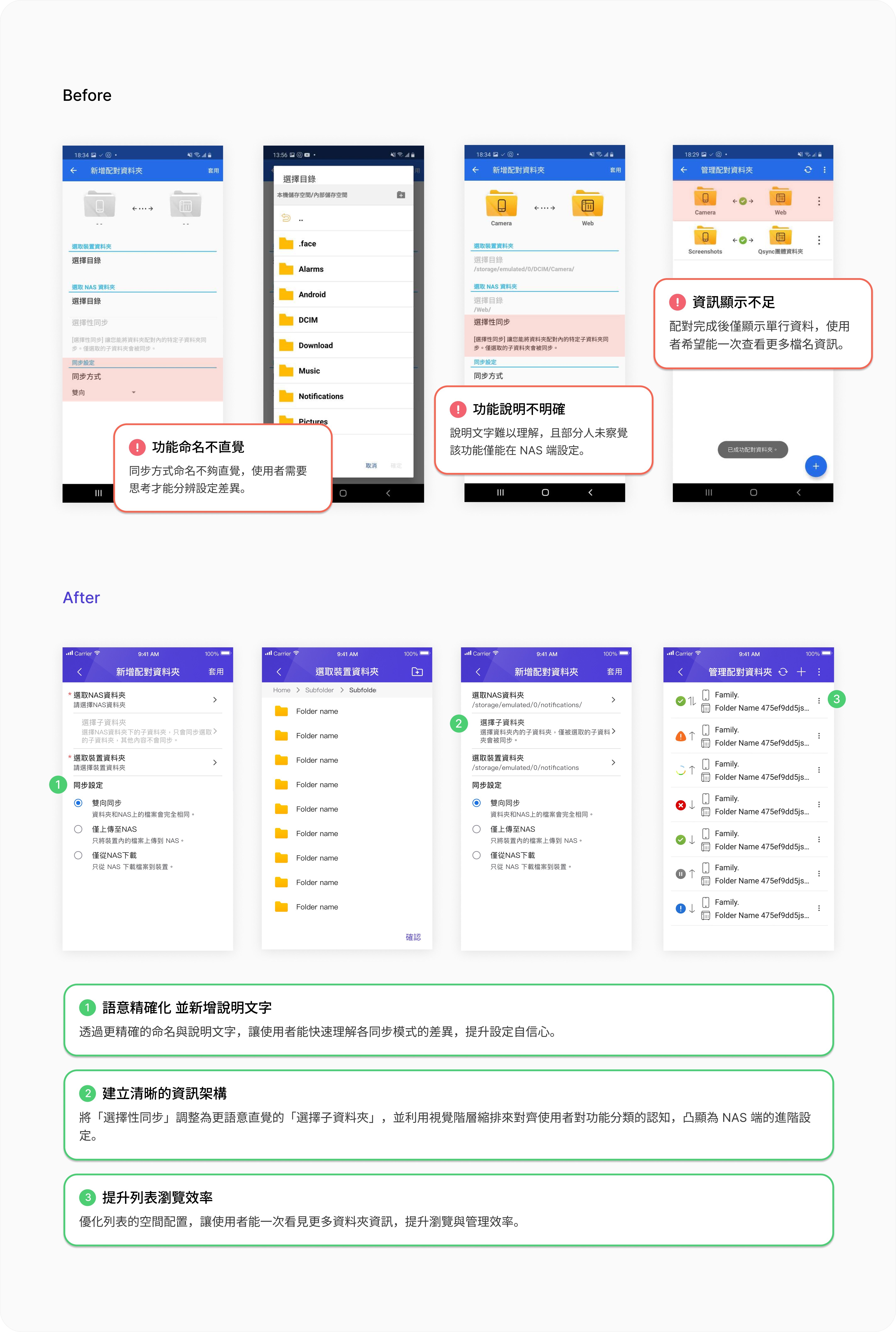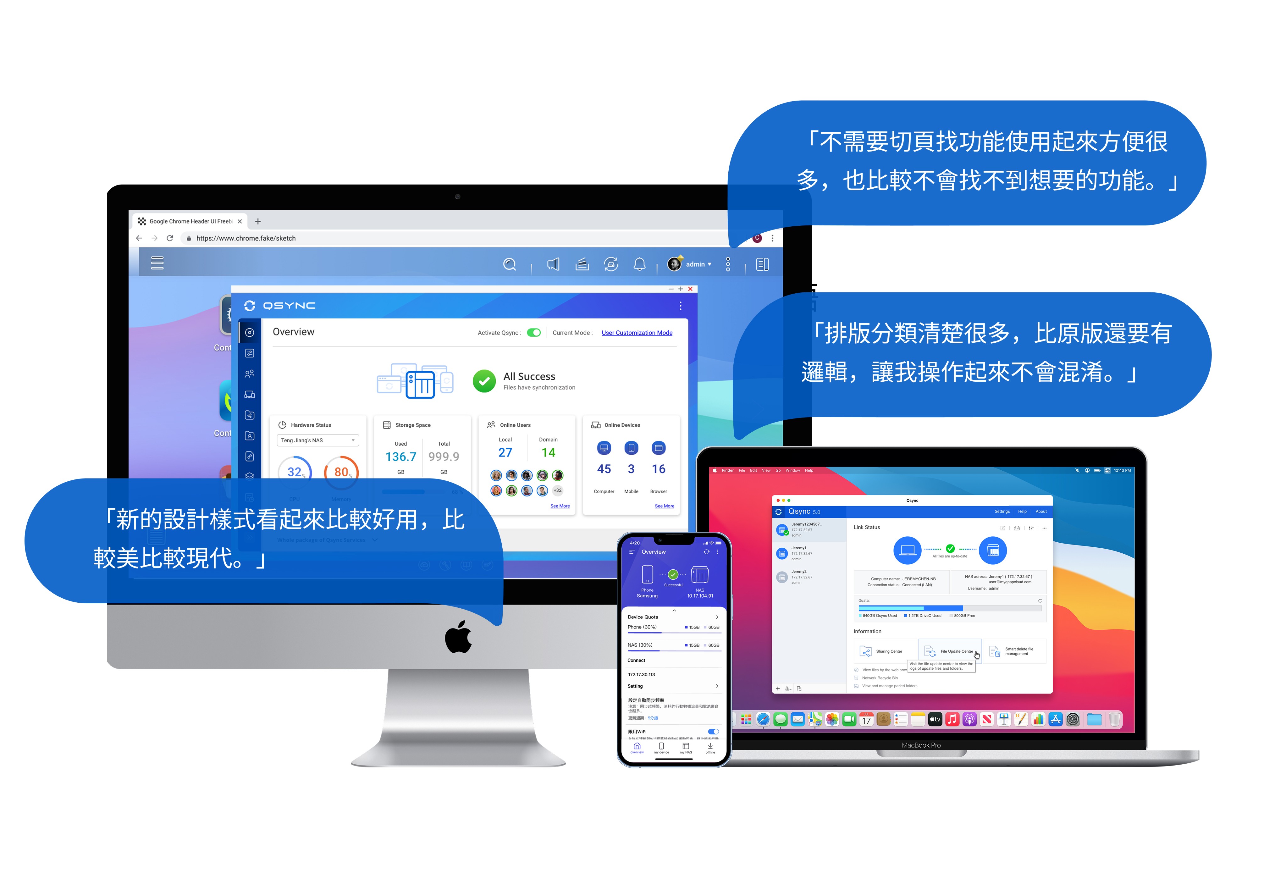 整體來說使用者認為產品更好用,樣式也更新穎、更符合現代風格,原本難用的功能在改版後很快就了解怎麼使用,並且對新的視覺風格也給予了正面評價,進而提升了產品的信任感,優化的資訊結構和語義清晰度極大降低了用戶的認知負擔,成功降低用戶對產品的心理障礙與挫折感,讓Qsync從技術工具轉為更值得信賴的私有雲備份工具。