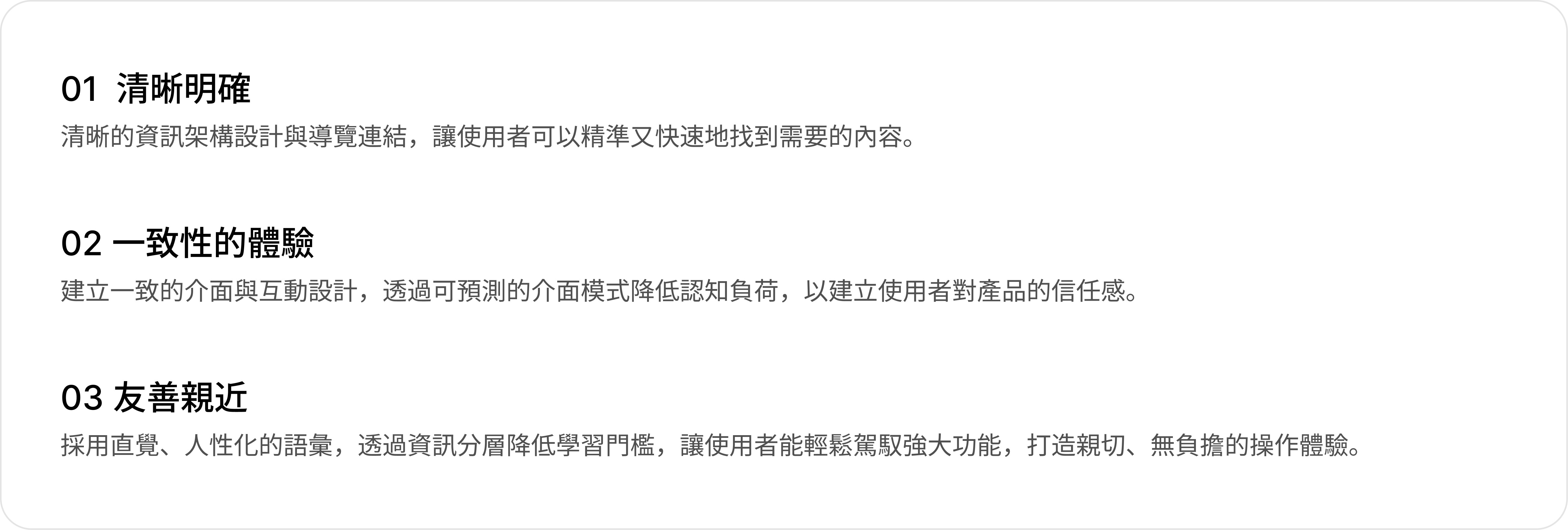 依據研究結果提出三項設計原則,作為改版的核心策略: